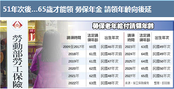 勞保老年給付請領年齡 (資料來源:勞工保險局)